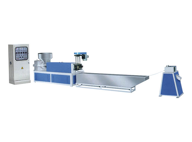 本機適用于HDPE、LDPE、PP等廢塑料再生造粒,該機配置快速電動換濾網裝置,自動溫度控制,切粒機采用調速電機與擠出機出料速度與之同步切粒,該機組產量高,性能穩定,操作方便,經濟效益好。